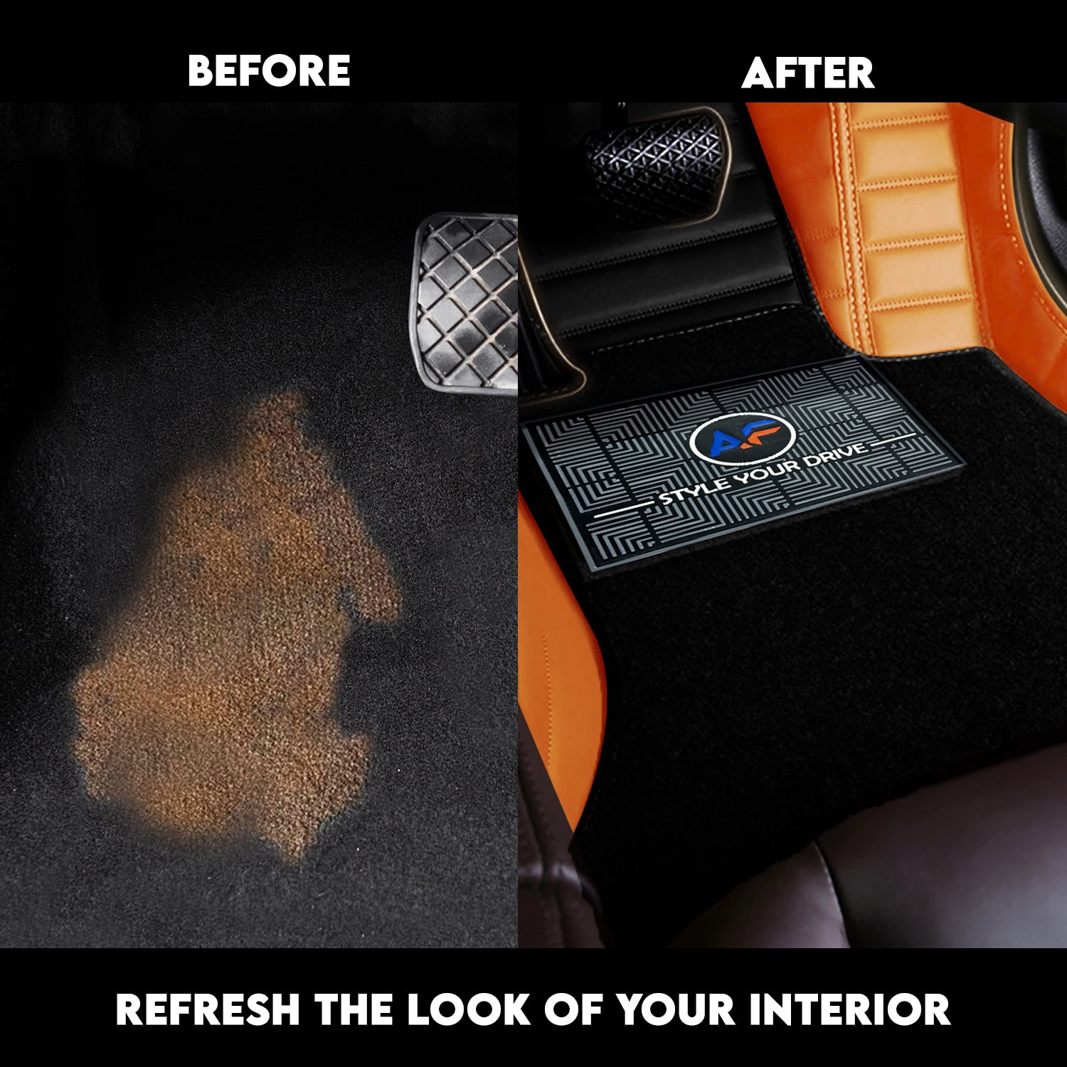 A Luxurious Combination of Style, Class, Comfort and Protection for your car is here. Autofurnish presents an exclusive range of 9D Luxury Custom fitted car mats taking Interior Auto Luxury to the Next Level. These car loor mats are crafeted with a perfect match to the interior colors of your car. Our Advanced Performance 9D foot mats are Tested for Extreme Conditions to Ensure they Don't Split, Slip or Deform. Autofurnish 9D mat has Anti Slip coated bottom layer to ensure that Mat Does not Move - Spike Mat on Top Give your Foot Traction & Comfort, Luxury styling with a Quality fitted finish. Digitally Design Match with Each Vehicle Application & Raised Edges Give Maximum Coverage. Made with highly durable material & uncompromised superior quality, it’s custom fit gives ultimate 9-Depth Layer Protection to the car’s original carpet. These 9D mats are for all-weather protection and can withstand water, mud, chemicals and feature a unique anti-skid surface, keeping the mat in place. The protective non-stick finish of the mats and the raised side walls keep fluids, mud, and sand off your vehicle carpet. Our mats made of engineered thermoplastic so they will not curl or crack.